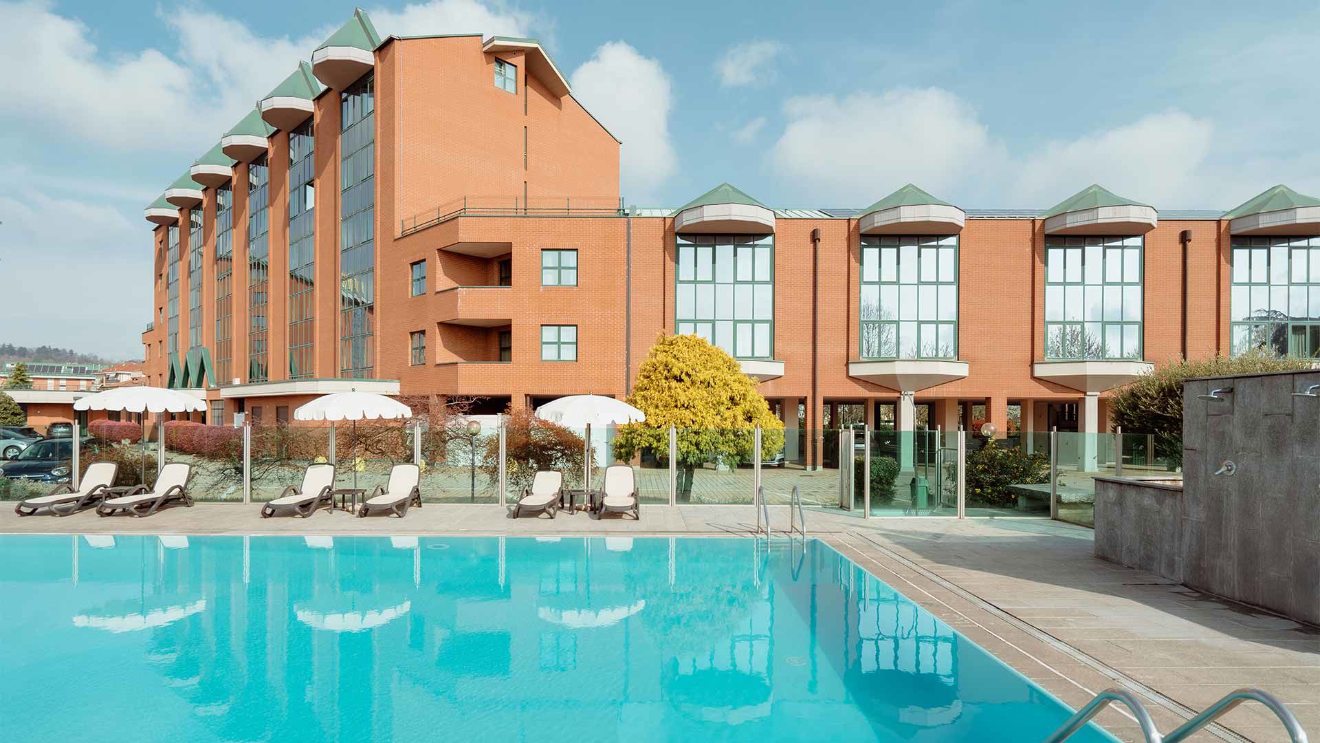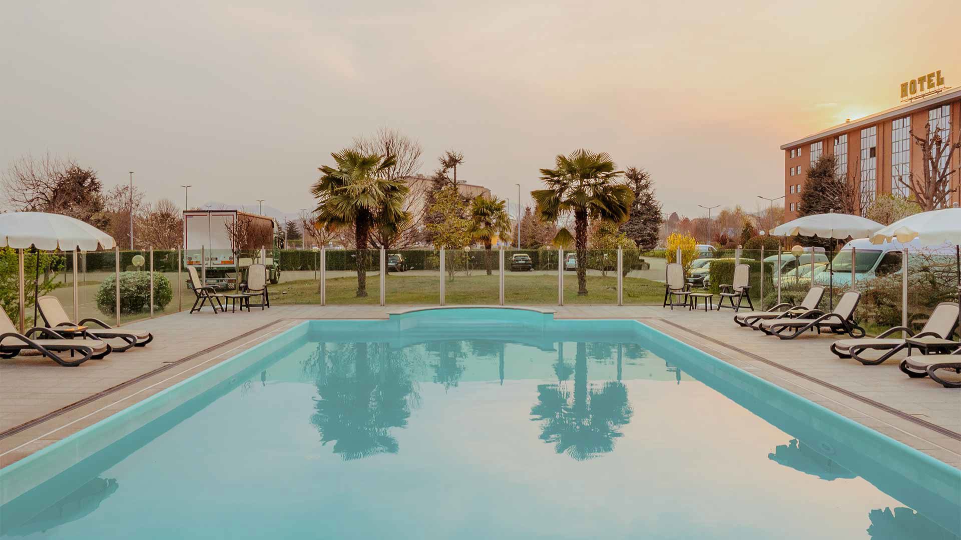 Il Rivoli Hotel a Rivoli, vicino Torino, mette a disposizione nei mesi estivi ad uso esclusivo dei clienti dell'hotel la sua piscina immersa nel verde dell'ampio giardino, tra fiori e piante, in una posizione che rimane soleggiata fino al tardo pomeriggio.